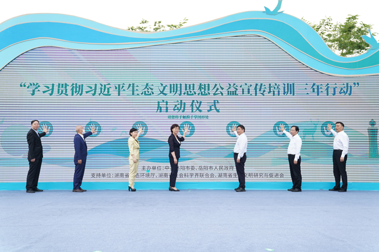 启动仪式由市委常委、市委宣传部部长刘启峰主持。黄兰香为岳阳市“守护好一江碧水”政协委员工作室授牌,曹普华为岳阳市生态文明实践教育基地授牌,省生态环境厅二级巡视员向建福介绍《学习贯彻习近平生态文明思想公益宣传培训三年行动方案》,市委常委、市委组织部部长谢群为“守护好一江碧水”采风摄影活动授旗,副市长黄伟雄宣读了“童心向未来”绿色生态实践活动方案。