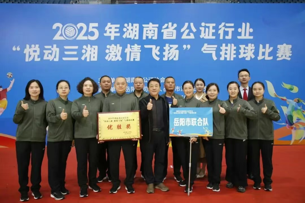 为推进我省公证队伍精神文明建设,促进全行业的交流与合作,2025年10月18日至19日,由湖南省公证协会主办,岳阳市司法局、岳阳市湘北公证处协办的2025年湖南省公证行业“悦动三湘 激情飞扬”气排球大赛在岳阳市湖南理工学院南院体育综合训练馆隆重举行。