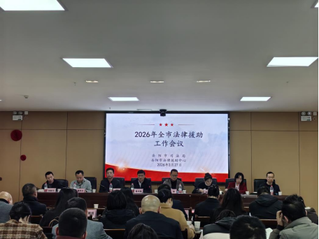 3月27日,岳阳市司法局召开2026年度全市法律援助工作会议暨业务知识培训,总结2025年全市法律援助工作,研判当前面临的工作形势,部署本年度重点任务,进一步提升服务效能,推动我市法律援助工作高质量发展。临湘市、湘阴县司法局及优秀案件承办人作经验分享及座谈交流,进一步凝聚共识、互学互鉴,推动全市法律援助工作协同共进。市司法局党组成员、副局长陈书凝出席会议并讲话,市法律援助中心主任曹恕主持会议。