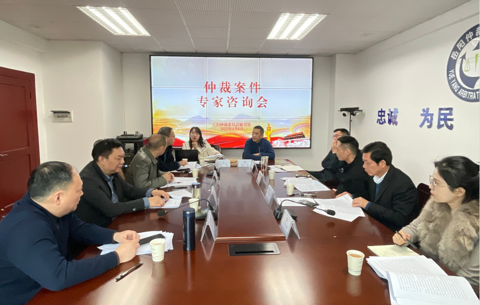4月6日下午,岳阳仲裁委员会邀请来自岳阳市司法局、律师事务所的六名专家就两起法律关系复杂、仲裁庭争议较大的仲裁案件召开了专家咨询会。岳阳市委全面依法治市委员会办公室专职副主任张韬出席并监督。