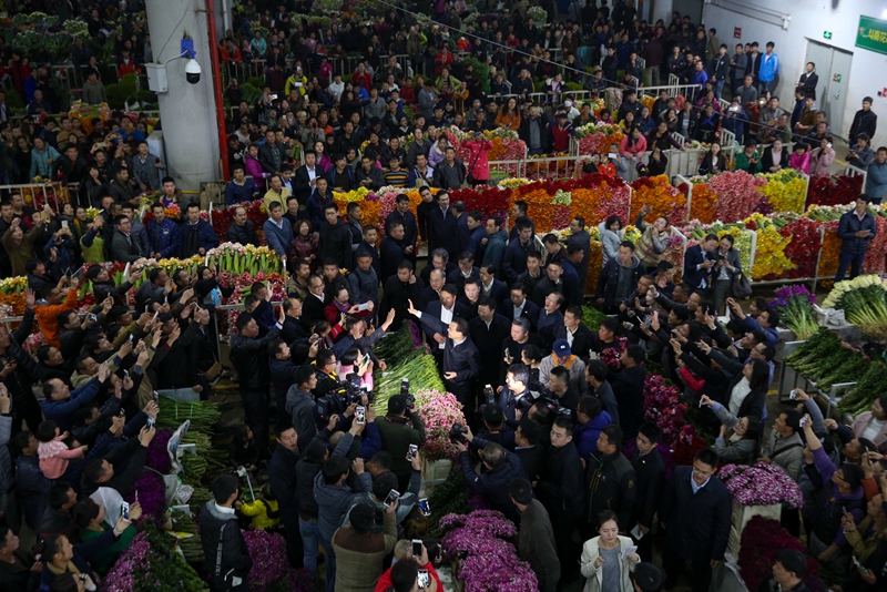 1月24日晚上临近9点,正在昆明考察的李克强总理临时增加行程,“突然到访”斗南花卉市场,让这个本来人声鼎沸的鲜花市场瞬间“爆棚”。