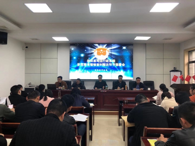会上传达了省厅、市局教育整顿督察组对全县司法行政队伍教育整顿第一阶段的反馈情况,总结了在第一阶段学习教育环节中取得的工作成效,指出了在该环节中存在的一些问题和不足,并宣读了《岳阳县司法局队伍教育整顿查纠整改环节实施方案》,对全县司法行政队伍教育整顿第二阶段查纠整改环节工作进行了详细安排部署。