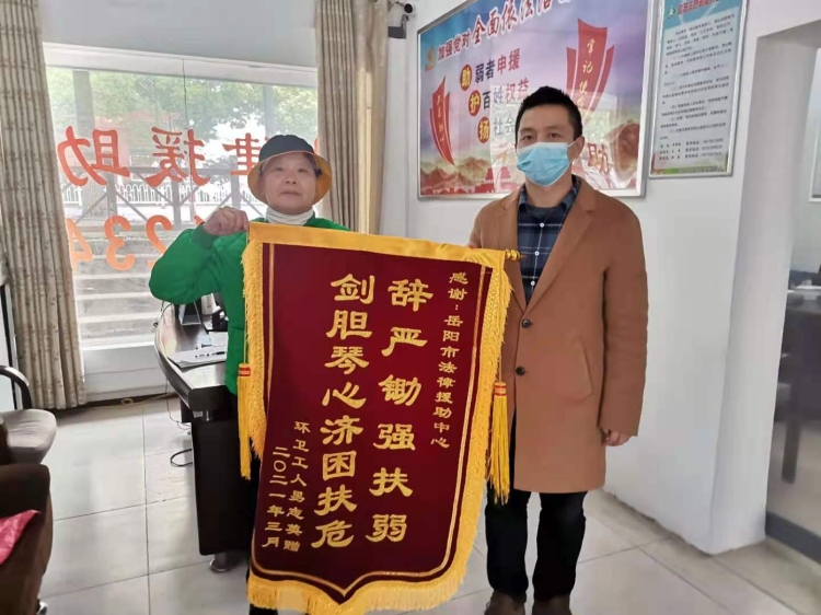 2020年,易女士于湖滨大道提供劳务进行路面清扫时受伤,伤情经湖南师范大学司法鉴定中心鉴定为十级伤残。因易女士已达法定退休年龄,双方未签订劳动合同,且接受劳务方某保洁管理所也没有为易女士缴纳工伤保险,人社部门无法认定为工伤,关于赔偿事宜经多次协商未果。通过“法援惠民生”宣传活动的了解,易女士与其配偶前往岳阳市法律援助中心申请法律援助。工作人员热情接待了两人,仔细审核了申请材料,认定符合法律援助条件后,当日受理、当日审批、当日指派给湖南岳州律师事务所,岳州律师事务所当日指派章浩然律师、胡琛(实习律师)代理该案。接受指派后,承办人主动找当事人全面了解案情,并指导其收集有效证据向岳阳楼区人民法院起诉。岳阳楼区人民法院支持易女士提出的11万元赔偿款的诉讼请求,接受劳务方不服上诉至岳阳市中级人民法院,后经调解达成民事调解书。最终,按照一审判决的赔偿金额,在受援人和承办人的督促下,某保洁管理所承担了赔偿责任,案件圆满终结。