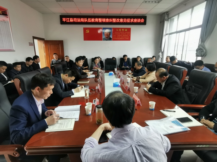为深入开展政法队伍教育整顿工作,坚持开门搞整顿,广泛听取社会各界意见建议,全面查找问题。4月22日下午,平江县司法局召开队伍教育整顿顽瘴痼疾线索征集座谈会,会议邀请了省人大代表黄乐、县人大代表童曲明、县政协委员陈坚、群众代表、25个基层司法所长及律所、法律服务所、司鉴所负责人,共40余人参加,共同为平江司法行政队伍教育整顿建言献策。局党组成员、副局长李明主持会议并讲话,司法局全体班子成员参会。