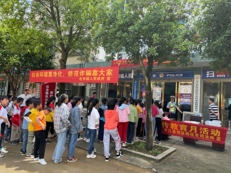 活动现场采用悬挂宣传横幅、发放宣传资料和张贴宣传海报等方式,由30名伍市小学学生组成“志愿普法服务队”,化身成“小小宣讲员”,为过往群众发放《未成年人保护法》宣传手册。工作人员在伍市居委会前设立法律咨询服务台,为群众提供法律咨询,解答群众疑问,并发放《中华人民共和国长江保护法》、《禁毒宣传手册》、《防诈骗手册》及《反家庭暴力法》等相关法律知识的宣传资料。活动共发放宣传资料4000余份,张贴宣传标语20余条。