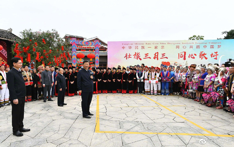 27日上午,正在广西南宁考察调研的习近平总书记,来到广西民族博物馆,参观壮族文化展,观看三月三“歌圩节”壮族对歌等民族文化活动展示,了解促进民族团结进步和民族文化保护传承等情况。(文字记者:张晓松、朱基钗;摄影记者:鞠鹏、谢环驰、申宏)