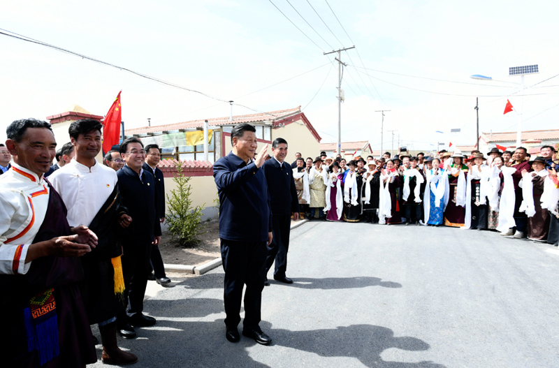 6月7日至9日,中共中央总书记、国家主席、中央军委主席习近平在青海考察。这是8日下午,习近平在海北藏族自治州刚察县沙柳河镇果洛藏贡麻村,走进藏族牧民索南才让家中了解生产生活情况。新华社记者 李学仁 摄