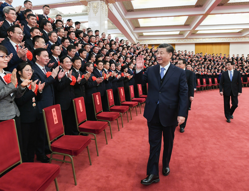 12月15日,党和国家领导人习近平、李克强、王沪宁、韩正等在北京人民大会堂会见平安中国建设表彰大会代表。新华社记者 谢环驰 摄