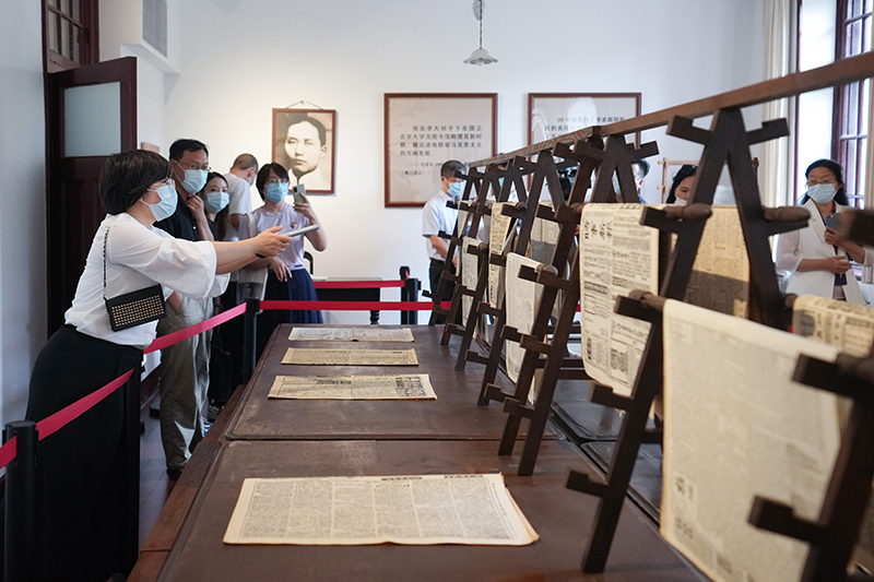 2021年6月29日,参观者在北大红楼内参观。新华社记者 鞠焕宗 摄