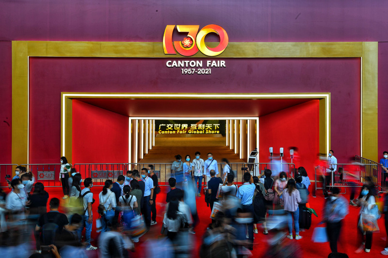 这是参展人员在广州举行的第130届中国进出口商品交易会(广交会)现场(2021年10月15日摄)。新华社记者 刘大伟 摄