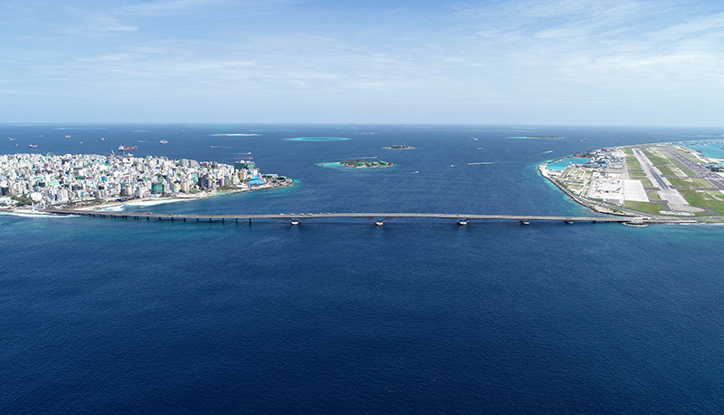 这是2019年8月30日在马尔代夫航拍的连接首都马累和机场岛的中马友谊大桥。新华社发(王明亮 摄)