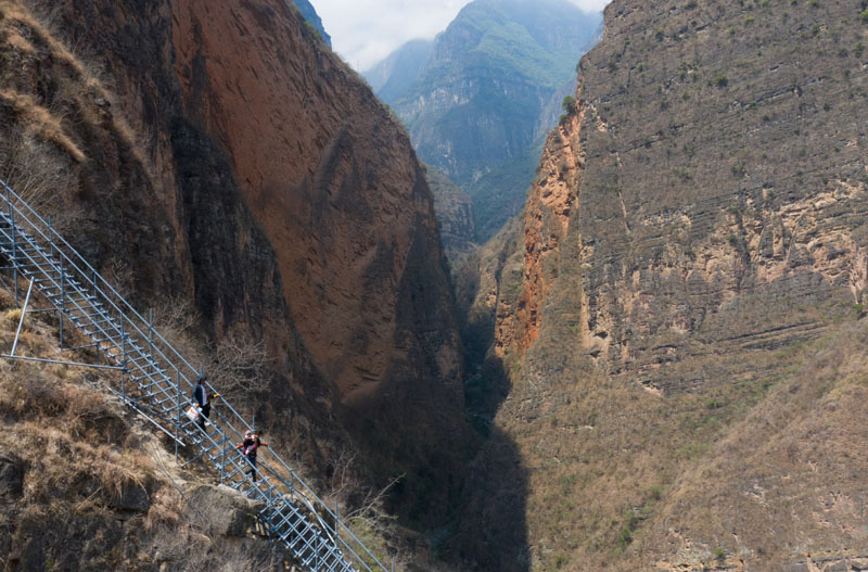阿土列尔村的万丈陡壁上,曾经摇摇欲坠的藤梯,已经换成了结实的钢梯。