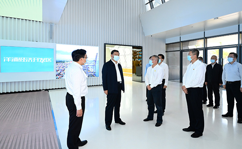 4月10日至13日,中共中央总书记、国家主席、中央军委主席习近平在海南考察。这是12日上午,习近平在洋浦经济开发区考察。新华社记者 李学仁 摄