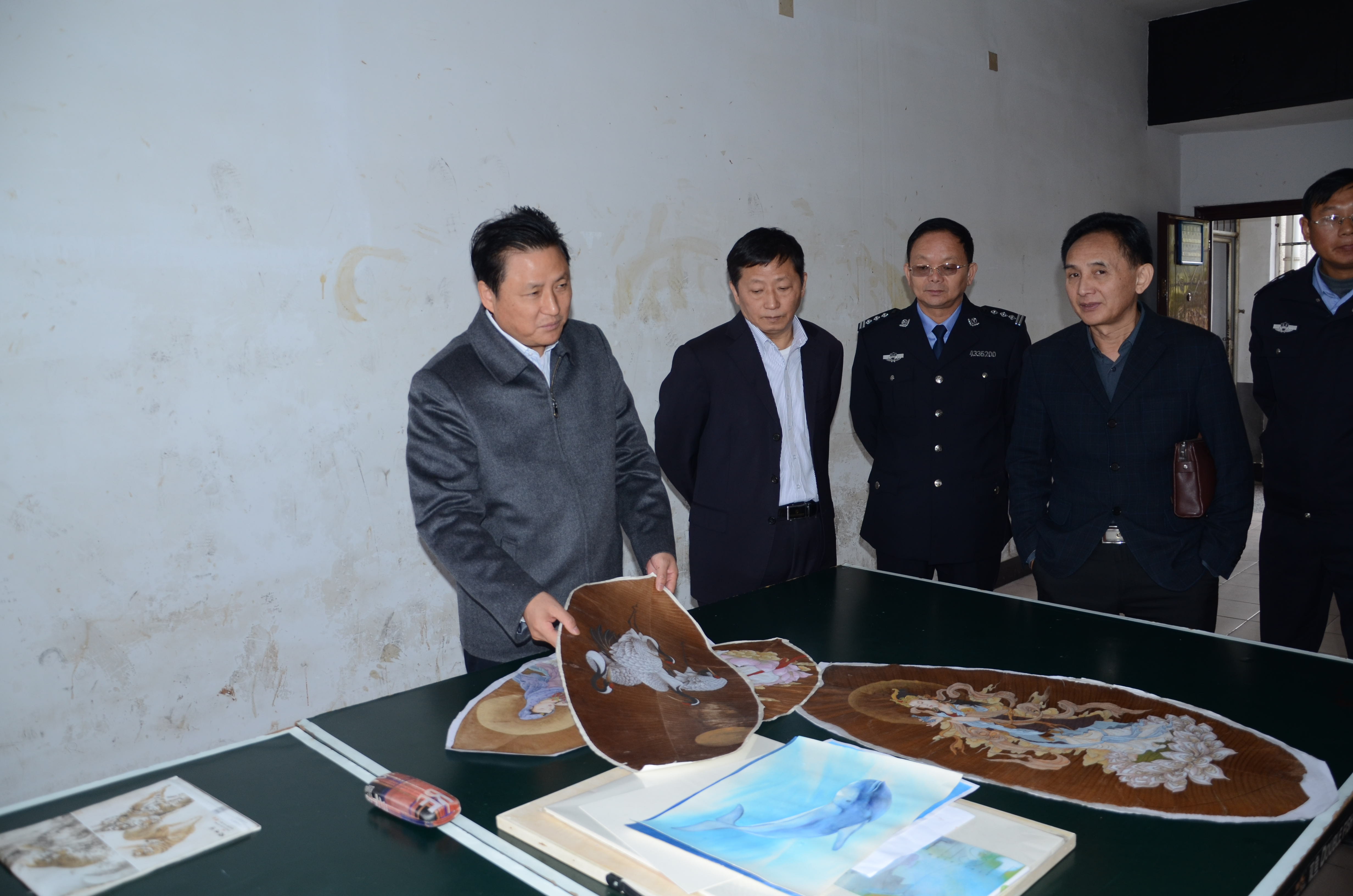 图为向伟雄书记(左一)在市强制隔离戒毒所与正在学习习艺的学员进行亲切交谈