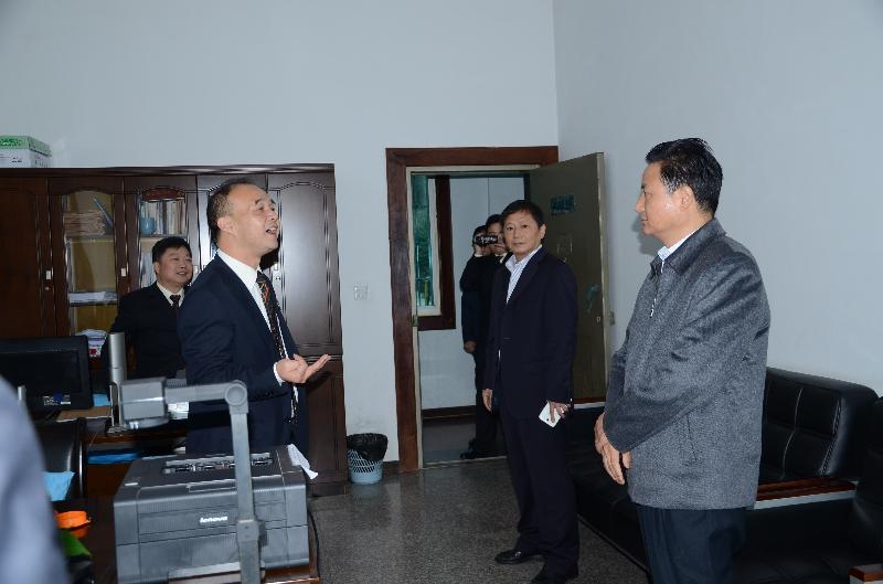 图为向伟雄书记(右一)在市司法局王湘涛局长(右二)陪同下在市公证处调研