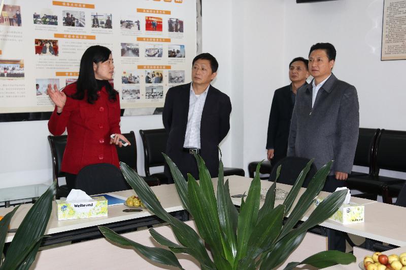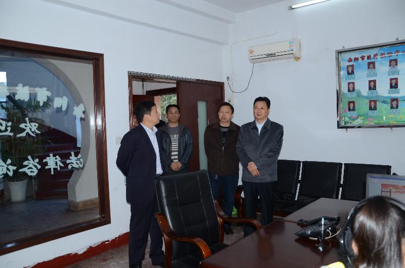 图为向伟雄书记(右一)在市司法局王湘涛局长(左一)陪同下在市法律援助中心调研