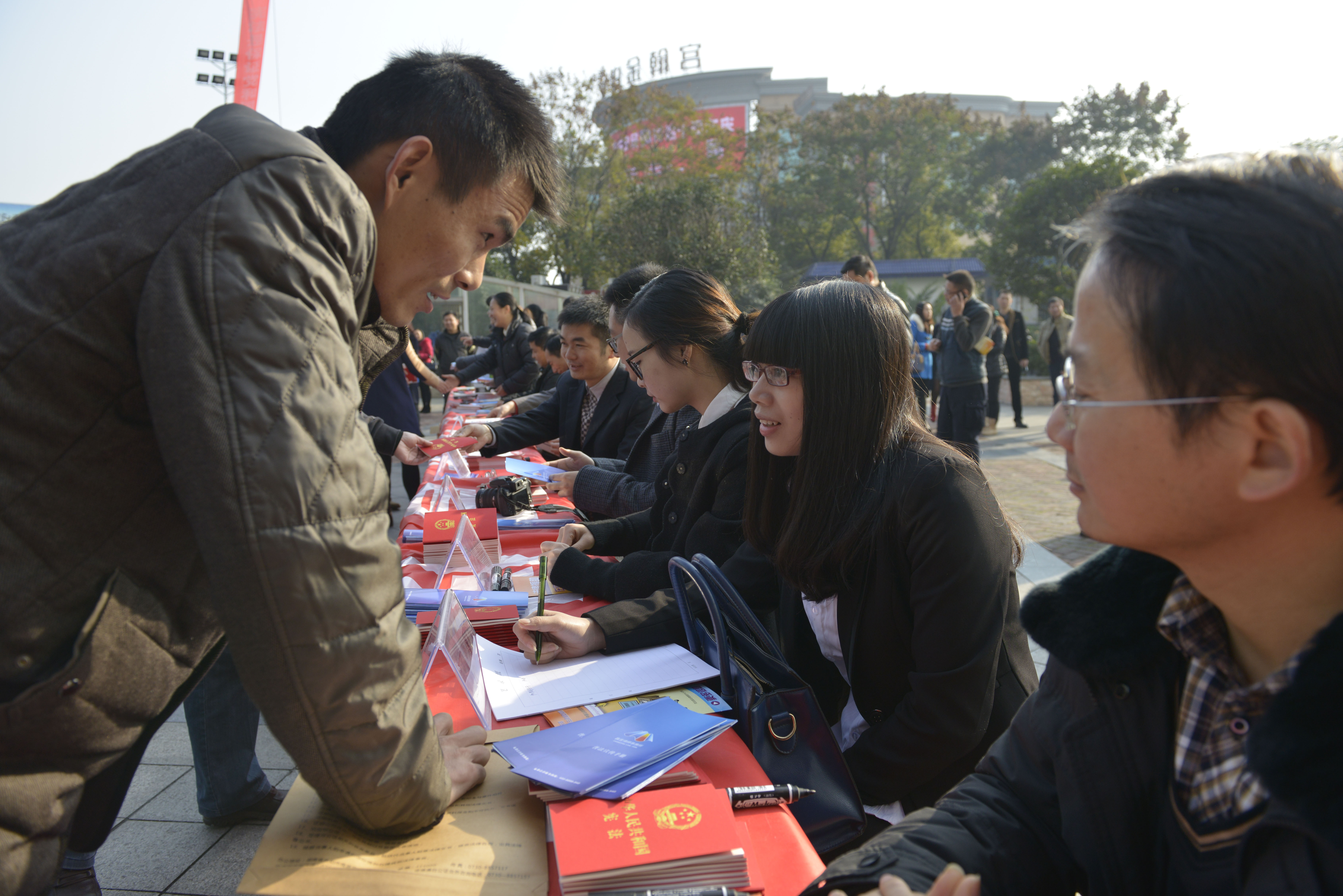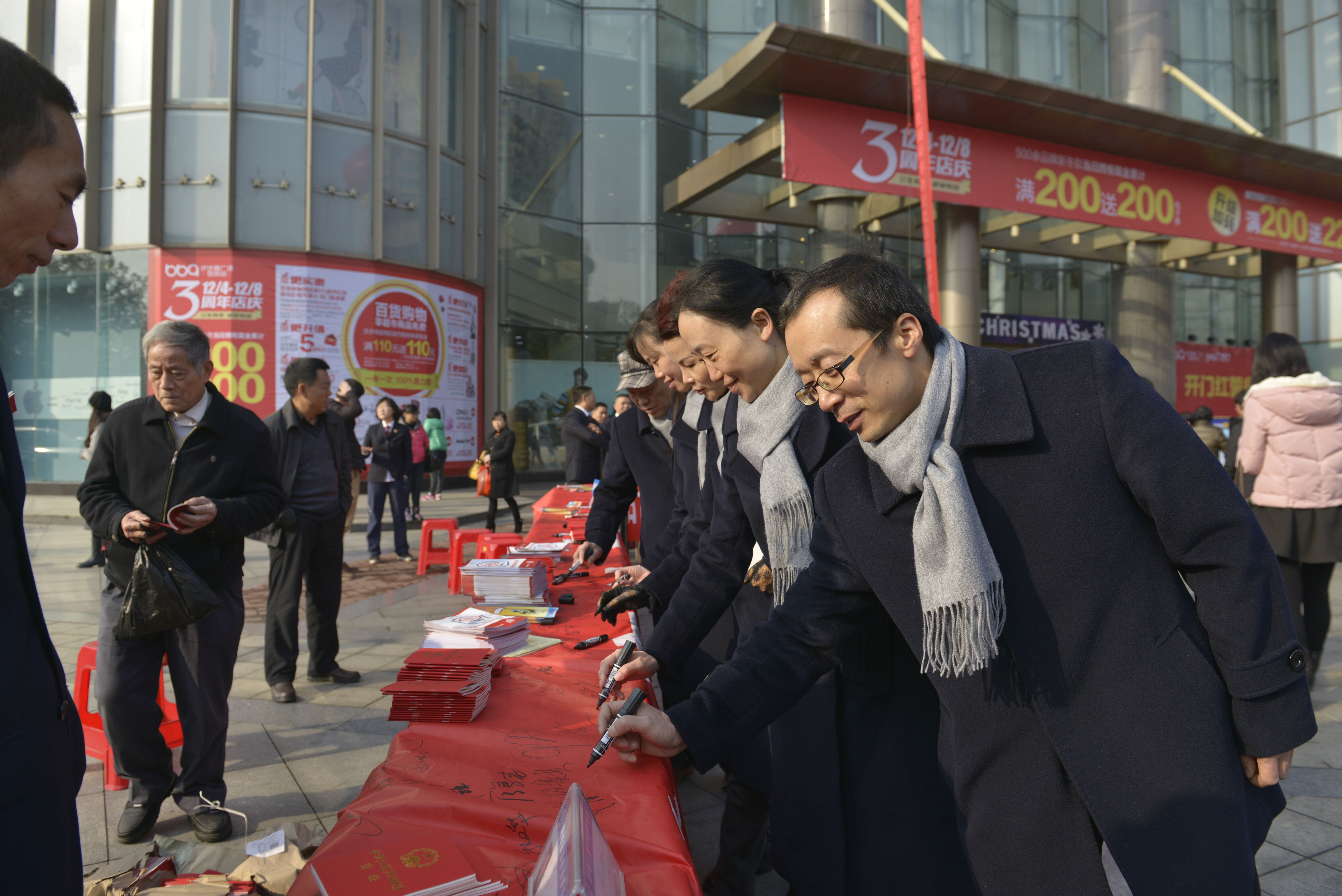 市民踊跃签名,领取宪法读本