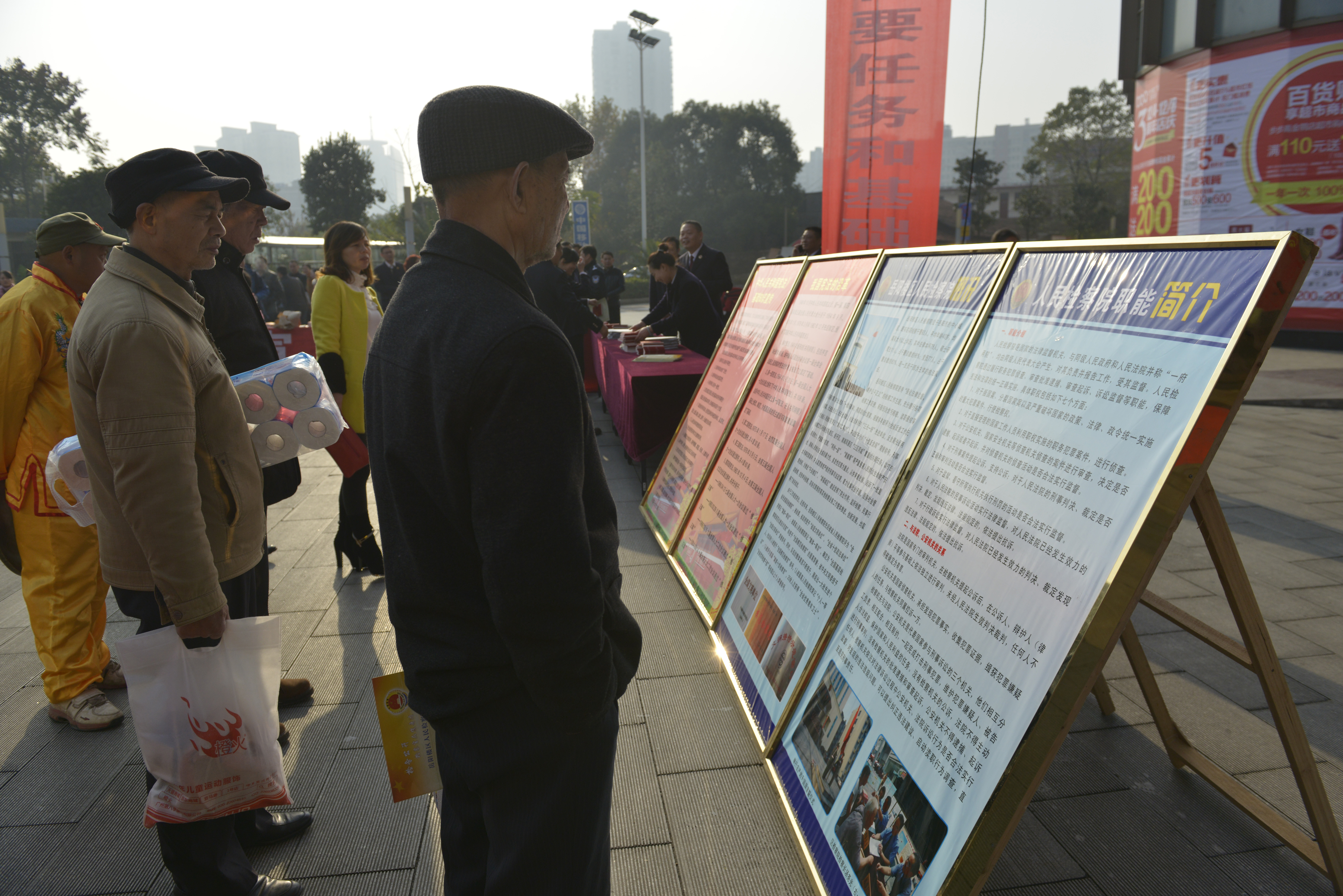 市民认真观看宣传板报