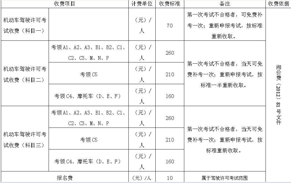 心系岳阳发展的人网友: 您好! 您的来信收悉,现回复如下: 1、机动车驾驶人考试各科目考试费用见附件。 2、如对驾校收取费用有疑问,可直接投诉物价部门12358反映。 3、食宿费的收取是由市公安局考试中心依据有关文件收取的,驾管所只收取考试费用。 4、已电话联系您,详细解答了考试费用收取情况。