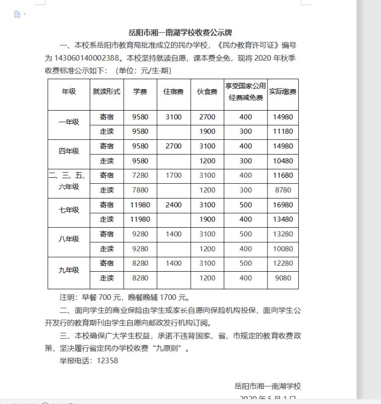 标题: 关于湘一南湖学校2020年秋季招生收费的疑问
