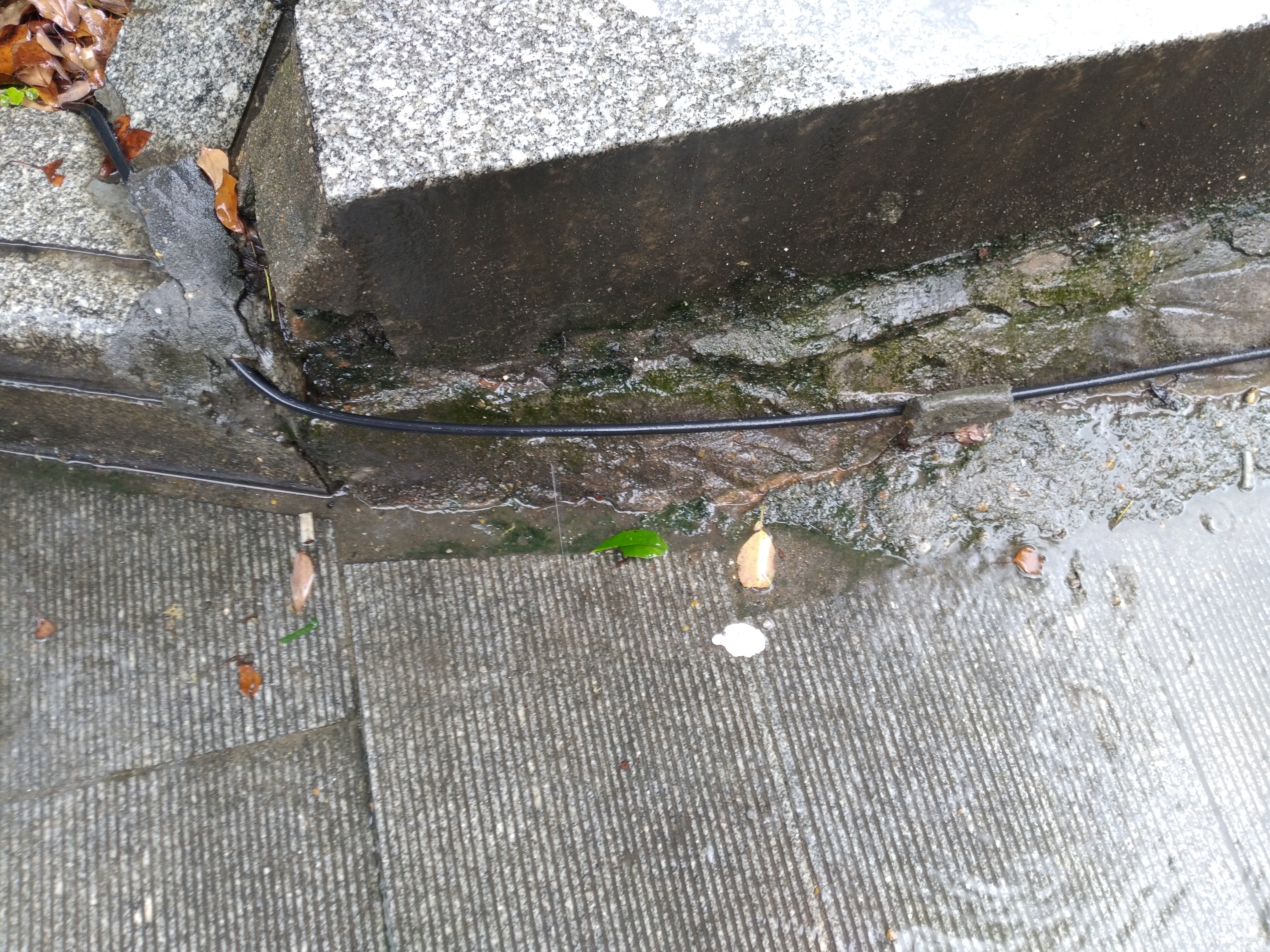 左宗棠广场东侧,来来往往人流和车流,一根电缆线居然裸露在外面。一旦出现破损漏电,那后果真的是不堪设想。