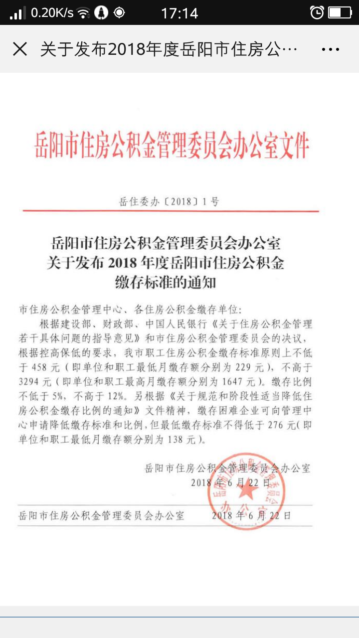 就您咨询的住房公积金事宜现予回复:根据《关于认真做好2018年度住房公积金缴存单位缴存年审工作的通知》(岳市公积【2018】76号)文件规定:2018年度岳阳市职工住房公积金缴存标准原则上不低于458元(单位和职工分别为229元),不高于3294元(单位和职工分别为1647元);确有特殊困难需降低缴存标准的,由单位职工代表大会或者工会讨论通过,报管理中心审批,但最低缴存标准不得低于276元(单位和职工分别为138元)。您的住房公积金缴存在异地,需达到最低缴存标准458元方能申请异地住房公积金贷款。