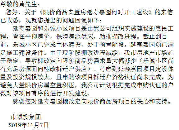 | 标题: | 限价商品安置房延寿家园何时开工建设 |