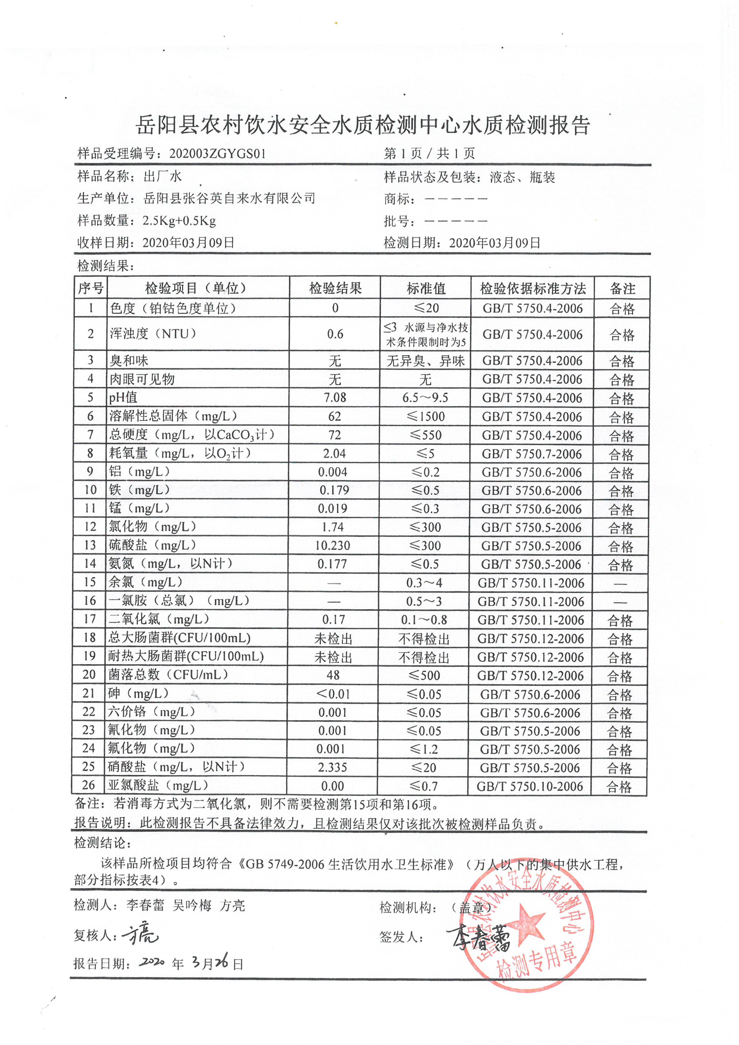 | 回复内容: | 费丽,您好! 您反映的问题已收悉,现就您反映问题回复如下: 在收到您所反映的关于张谷英镇集镇自来水水质污染的问题后,我镇党委、政府高度重视,镇党委书记、镇长、分管副职干部、自来水厂负责人到张谷英中心学校、学校周边住户家中对自来水水质情况进行实地查看了解。 根据调查分析,学校自来水偶尔出现水质不干净的原因有:一是因主水管分支到学校水管管壁存在水垢,在长时间没有放水的情况下,水垢沉积,在打开水龙头后会有水质浑浊的情况;二是在管网出现管道或阀门等零件损坏的情况下,经过停水抢修维修后,管道或零件的杂质脱落导致。这两种情况导致自来水出现短暂的水质浑浊现象,在打开水龙头放水一段时间将水垢、杂质排出后即恢复正常。相关部门每个季度会对集镇自来水水质进行检测,根据自来水水质检测结果显示,集镇自来水水质符合国家标准。 附件:镇党委书记、镇长、分管副职干部、自来水厂负责人在学校、居民家中实地查看自来水水质图 集镇自来水水质检测结果报告图 岳阳县张谷英镇人民政府 2020年6月24日